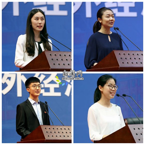 本科生在校生代表、保险学院2013级本科生王润,研究生在校生代表、英语学院2015级硕士研究生张炜杰,本科新生代表、国际经济贸易学院2016级许正浩,研究生新生代表、金融学院2016级乔步江相继上台发言,用自己诚挚的话语表达了对惠园教师们的感激与对新学期的展望。