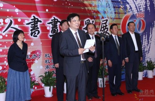 施建军校长致辞说,在秋风送爽、丹桂飘香的美好季节,贸大喜事连连不断,本次书画摄影展为校庆再增光彩。广大师生校友名人用笔墨书写一幅幅喜悦,用丹青描绘一幕幕幸福,用镜头抓捕一个个精彩瞬间,成就了“惠园60年”师生校友名人书画摄影展这场视觉盛宴。这些作品从不同的视角、不同的感悟、不同的表现手法,表达了师生校友名人对贸大的美好祝愿。