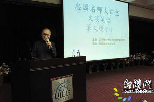 5月12日晚,诚信楼三层国际会议厅挤满了前来听讲的师生。一副黑框圆眼镜,一袭纯色朴素衣,一个博闻强识的读书人,一个敢思敢言的评论家:梁文道,凤凰开卷八分钟,贸大论道两小时。